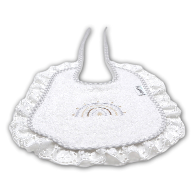 Σαλιάρα δετή με δαντέλα λευκή-900Γ